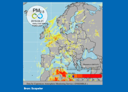 Onderzoek van Scapeler liet zien hoeveel extra fijnstof er tijdens de paasdagen in de lucht hangt, bovenop wat normaal gesproken wordt verwacht (zie afbeelding).